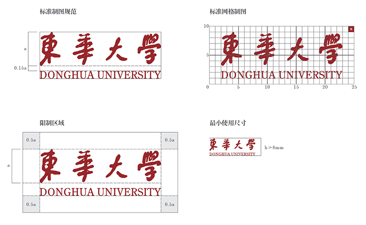 标志:内含“Donghua”拼音首字母DH的变形;标志中的图案意指太阳、月亮,寓意东华传承的人类文明与日月同辉;图案也意指经线和纬线绣成的锦缎,表明源自以纺织为特色的学校,蕴含了学科发展的历史,同时也昭示在原有特色的基础上,学科领域不断拓展,科研成果被广泛应用于航天、军事、建筑、环保、新材料等高科技领域,创造出顶天立地、与日月同辉的光辉业绩,表示蒸蒸日上,蕴含着勃勃的生机。