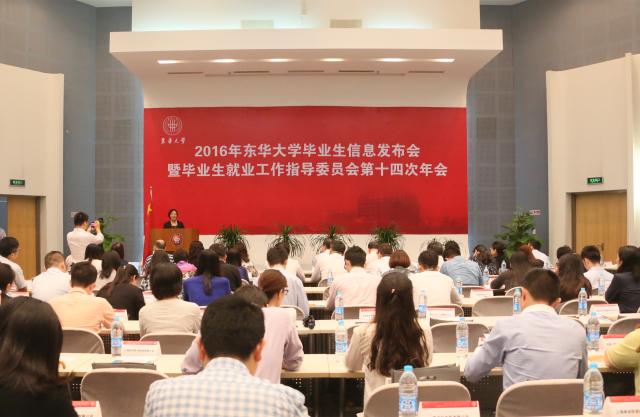 9月23日,2016年毕业生就业信息发布会暨毕业生就业工作指导委员会第十四次年会在松江校区召开。校党委书记朱民,副书记刘淑慧,校党委常委、服装学院党总支书记袁孟红,上海市教委学生处处长平辉出席会议,来自上海、北京、江苏、浙江、山东等全国各地的130多家知名企业代表、人事部门负责人参加会议,各学院和有关职能部处负责人与会。会议由学生就业服务中心主任宋丽贞主持。