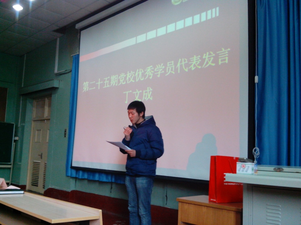 上期党校优秀学员代表丁文成同学分享了自己的学习体会,寄语新一届学员端正学习态度,认真学习党的先进理论和无产阶级革命家的先进事迹,不断增强党性修养。管理1203班姚芳敏同学作为新学员代表,向老师们做出了“按时上课、严格要求自己和主动完善自己”的保证。
