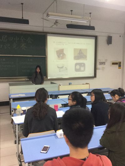 11月19日晚,外语学院英语11级毕业班学生党支部在松江校区第二教学楼举办十八届四中全会精神知识竞赛。支部成员分为两组,竞赛分为两个部分。