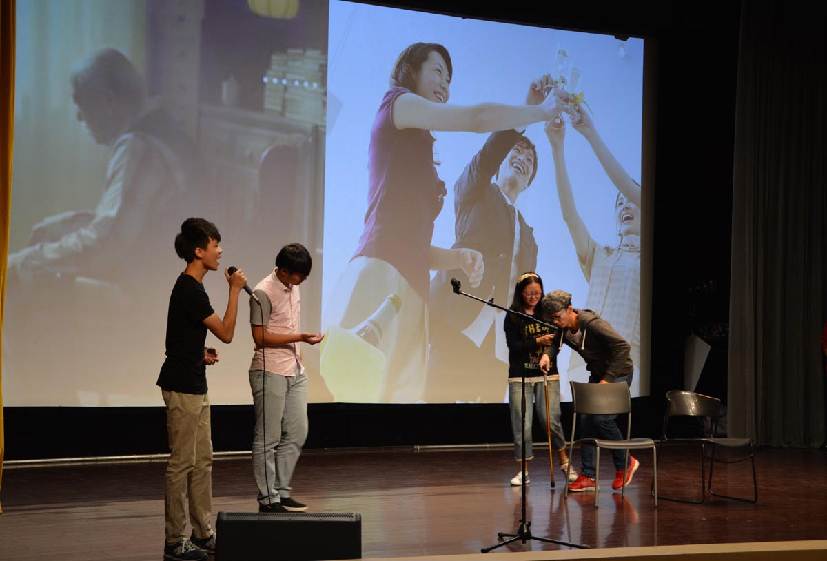 开幕式前,我校学生艺术团和科学商店总店成员为居民献上了精彩的文艺表演。金帜繁的管乐典雅而又流畅,吉他弹唱动听而富有朝气,陈嘉伟嘹亮而蕴含深情的歌声,赢得了观众热烈的掌声。歌曲《时间都去哪儿了》中父亲的角色,引起了全场观众的共鸣。