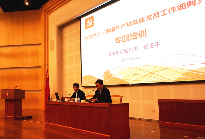 培训会上,上海市委组织部电化教育中心(党员服务中心)副主任杨正平作专题辅导报告,从《细则》出台的背景、修订的主要特点及内容、如何学习贯彻《细则》等几个方面进行了深入阐释,并从理论到实践、宏观到微观的多个角度,重点解析了入党积极分子的确定和培养教育、发展对象的确定和考察、预备党员的接收、预备党员的教育考察和转正等具体内容。