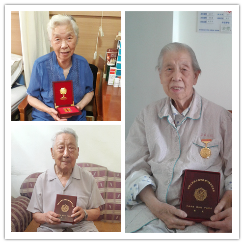 获颁抗战胜利纪念章的部分抗战老战士老同志(右:刘洁;左上:周巧英;左下:都烈信)