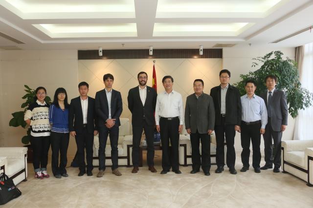 10月12日,国际大学生体育联合会竞赛部主任Paulo Ferreira、国际攀岩联合会技术官员Jerome Meyer、教育部学生体协项目主管张利娜一行来校检查2016年世界大学生攀岩锦标赛筹备工作,校党委书记朱民代表学校会见了来访代表,并进行了亲切会谈。校党委副书记罗仪华、上海市教委体卫艺科处处长丁力、校国际交流合作处处长顾伯洪、体育部主任朱江华参加了会见。罗仪华率2016年世界大学生攀岩锦标赛组委会(筹)的六个工作部向国际大学生体育联合会代表一行就筹备工作及赛事总体方案做了专题汇报。