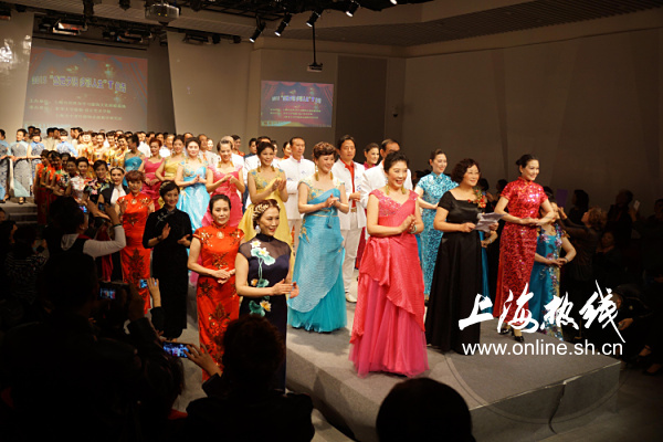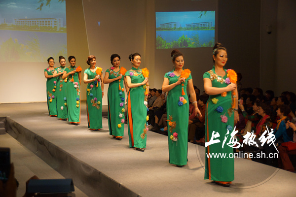 据上海市中老年服饰表演教学研究社社长、体育部退休教师,今年76岁的邵季英介绍,担任示范展示的12 位教练均是教学研究社会员,他们有着丰富的教学经验,是资深的服饰表演教学老师,展示的模特儿都为教练所带队员。