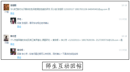 系主任罗艳老师进行了回帖指导和答疑,基础化学部副系主任黄焰根老师也对同学回帖留言,形成了师生间的良好互动。