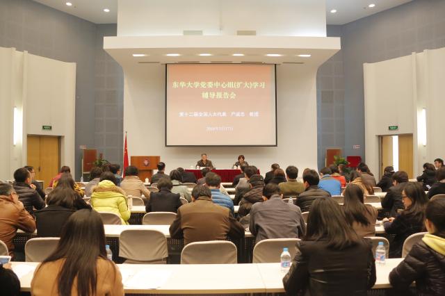 3月17日,学校召开党委中心组(扩大)学习辅导报告会,邀请全国人大代表、我校管理学院严诚忠教授传达贯彻全国“两会”精神,校领导班子成员及部分退休老领导出席。会议由党委副书记刘淑慧主持。