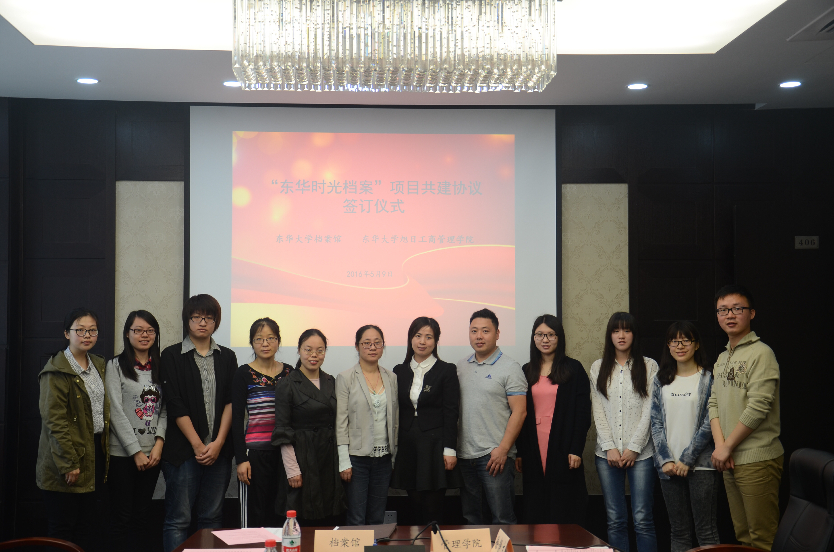 5月9日,“东华时光档案”项目共建协议签订仪式在延安路校区举行。档案馆馆长沈洁、管理学院党总支副书记叶晓燕代表合作双方签署协议。