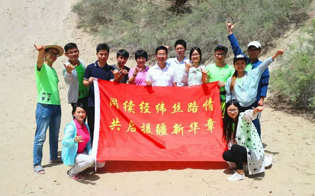 这个暑假的新疆之行,是师生援疆暑期社会实践团开展的第六期暑期实践活动,值得一提的是,今年的援疆团是个“跨界”的团,成员不仅仅来自,还有苏州大学、浙江理工大学、新疆大学、塔里木大学等多所内地高校,甚至还有来自香港理工大学的成员,成员中既有本科生,也有硕士生和博士生,指导教师也来自不同学校甚至不同学科背景——邱夷平教授担任团队指导教师,纺织学院张强、袁海源,理学院钟德俊,苏州大学纺织服装学院刘海,塔里木大学陈春晖担任带队老师。60余名援疆团成员在乌鲁木齐、阿拉尔、阿克苏、库尔勒等新疆九个地区开展为期16天的系列实践活动。