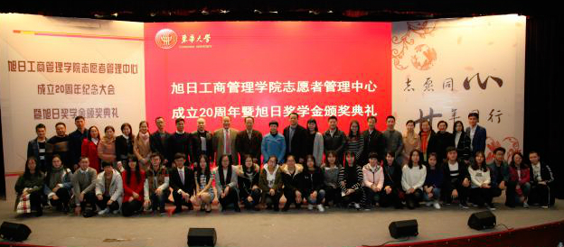 11月26日,管理学院志愿者管理中心20周年纪念大会暨旭日奖学金颁奖典礼在延安路校区举行,松江大学园区管委会常务副主任、原党委副书记兼副校长吴楚武出席,学院领导、校内外嘉宾、学院历任志愿者管理中心(爱心助老志愿团)负责人、志愿服务合作单位代表及200余名师生代表与会。