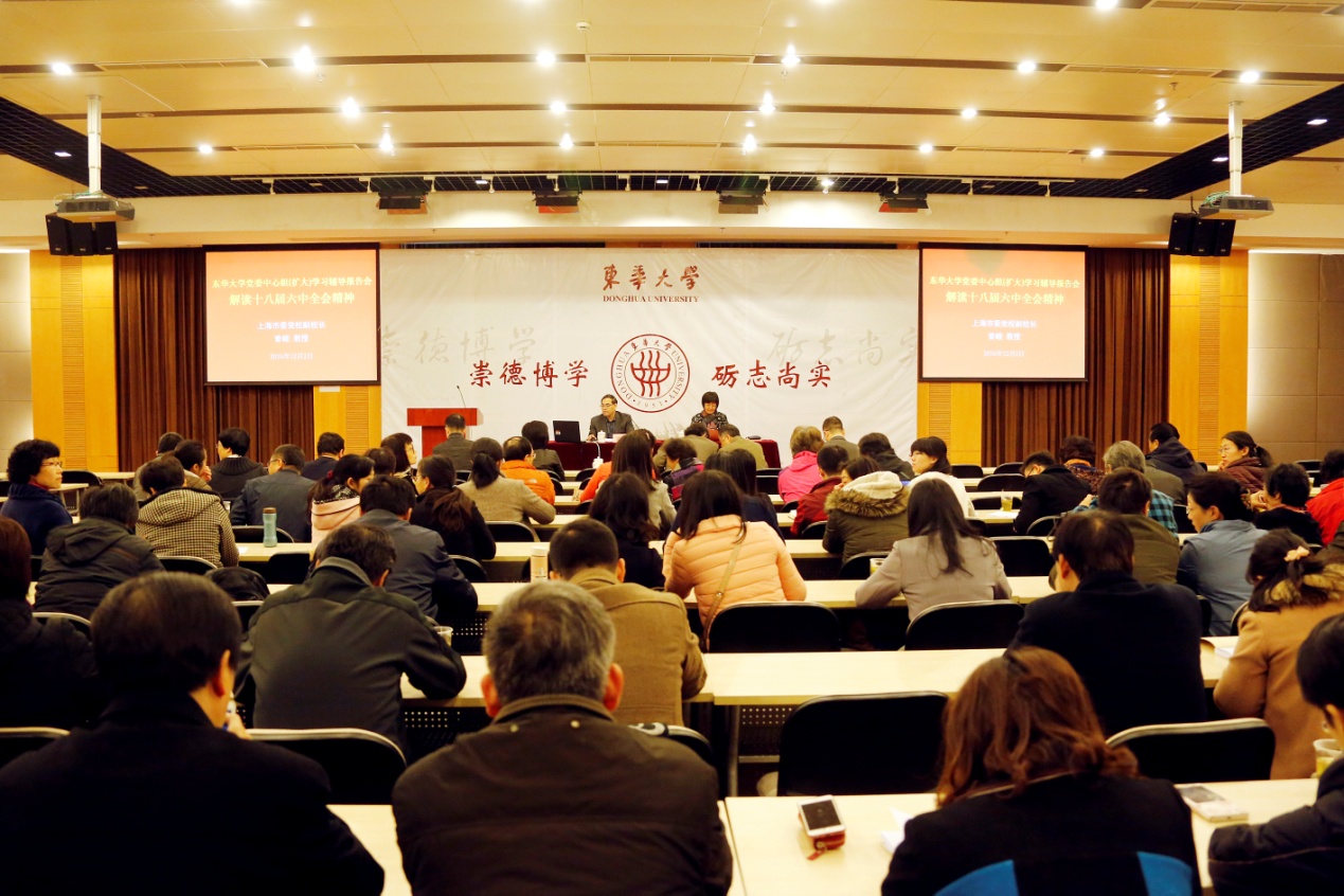 12月2日,学校在延安路校区召开党委中心组(扩大)学习会议,上海市委党校副校长曾峻教授应邀做学习贯彻十八届六中全会精神辅导报告。校长蒋昌俊,校党委副书记刘淑慧,校党委副书记、纪委书记金海燕,副校长刘春红、李永智、陈革出席。刘淑慧主持会议。