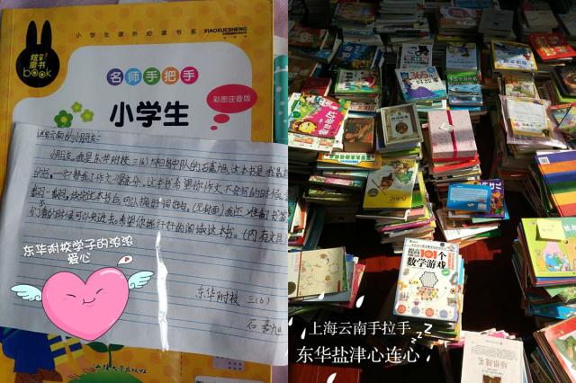 2015年11月,对口援建的云南省盐津县首批选派11名中小学教师来附属实验学校学习、培训,2016年8月、10月,盐津县教育局又组织30名中小学骨干教师、30名校长分两批来到东华附校学习培训和参观交流。在和他们的交流中,附校老师了解到盐津县很多学校还没有专门的阅览室,适合儿童阅读的书籍也极其匮乏。为圆盐津孩子们的阅读梦,去年东华附校捐赠的2000余册图书已在盐津部分中小学“安家落户”。