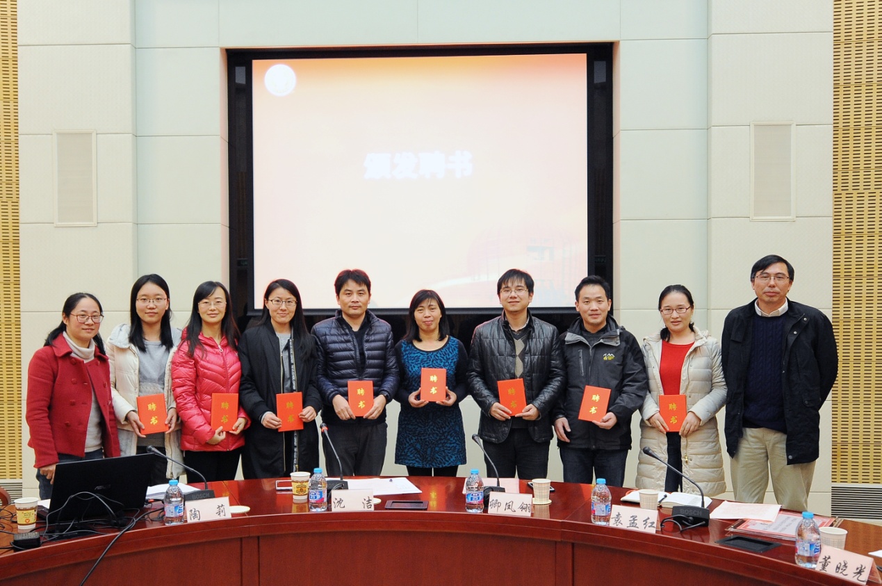 (卿凤翎为档案工作先进集体颁奖,图为服装学院负责人领奖)