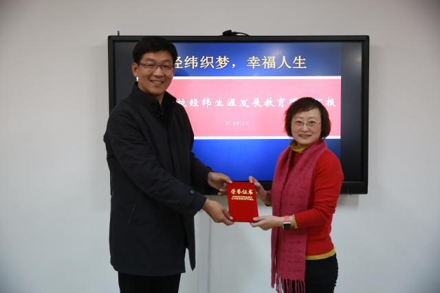 在我校学生就业服务中心的帮助和指导下,东华附校启动实施了“经纬织梦,幸福人生”生涯发展教育项目。日前,在该项目学期总结会上,校学生就业服务中心主任宋丽贞受聘为“东华附校经纬生涯发展教育项目荣誉导师”,陈雁、刘洁两位老师受聘为项目特聘讲师。