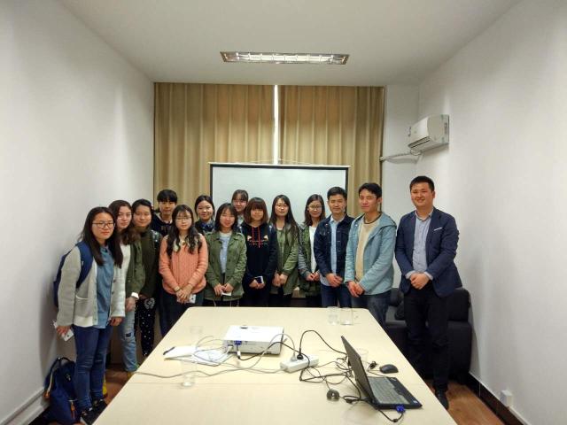 4月7日,外语学院阳光服务队在32号楼311举行生涯故事分享会,受邀分享的两位同学分别是13级日语专业即将入职中国工商银行股份有限公司的崔飞鹏和英语专业拟录取为外语学院外国语言学及应用语言学硕士研究生的倪小芳,分享会由学院生涯教育和资助工作负责老师杨超主持。