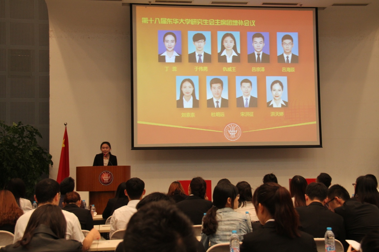 4月21日,第十八届研究生会主席团增补会议于松江校区图文信息中心第二报告厅召开。根据《研究生会章程》及相关通知的要求,全校共推选出102名研究生代表参加会议。校团委负责人、各学院分团委书记等出席会议。