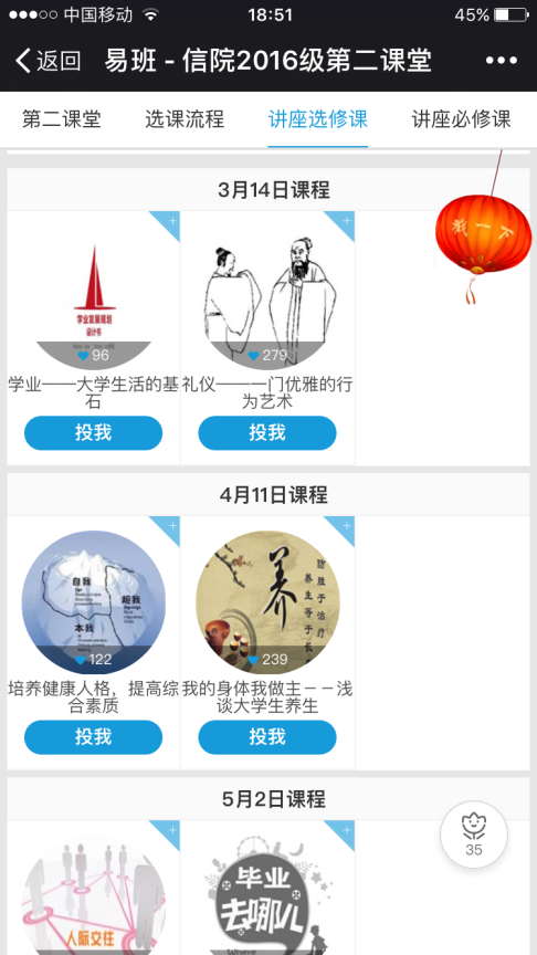 为进一步贯彻落实全国高校思想政治工作会议精神,加强大学生综合素质培养和提升,围绕学校、学院工程创新型人才培养目标和思路,信息学院今年3月启动了第二课堂教学课程改革,即采用“C-O-P”新的课程体系,即2+4+1模式,2次必修课(Compulsory course)、4次选修课(Optional Course,8选4)和1次实践拓展类课程(Practical course)等模块化方式,进一步拓展和丰富了第二课堂教育教学体系。