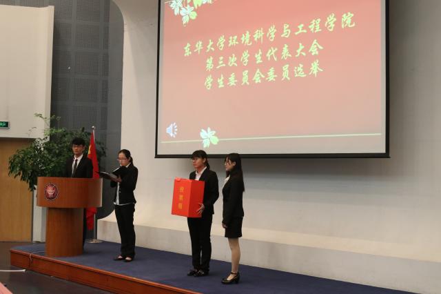 5月13日,环境学院第三次学生代表大会在松江校区举行。学院院长柳建设、校团委书记张晓冬、学院党委副书记马欣、学院团委书记仝泽民以及58名学生代表参加会议。