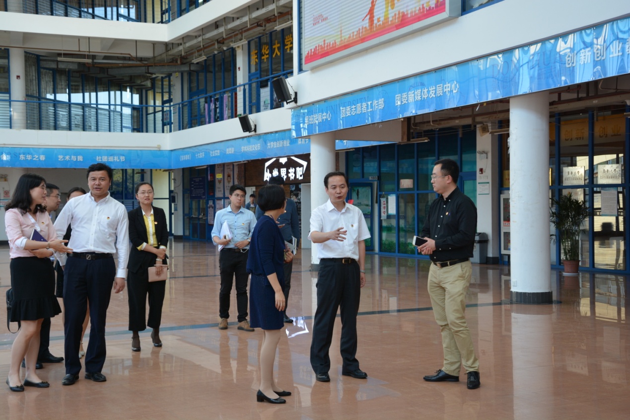 座谈会后,杜汇良一行参观了我校大学生活动中心,高度肯定了我校对学生活动场地的配套设施保障。参观中,杜汇良再次对学校党政对共青团工作的支持表示感谢,同时希望我校不断提升团学工作引领和服务水平,祝愿东华学子健康成长成才。