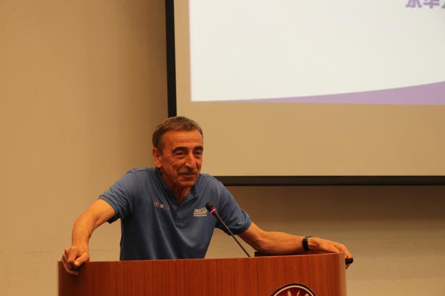 可可维奇首先向大家介绍了自身的经历,以及他对足球的理解和他的青训理念为同学们展开了深入讲解。期间可可维奇先生生动形象的讲解给在座的同学们都留下了深刻的印象。