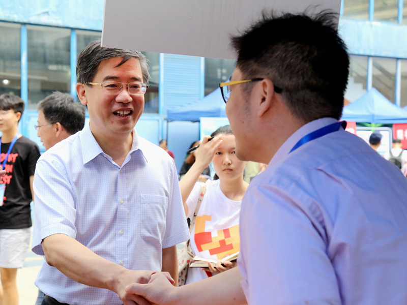 9月16日,东华校园迎来5743名2017级新生。3470名本科生和2273名研究生怀着憧憬和梦想从祖国各地汇聚到,开启他们的人生新征程。校党委书记朱民,校长蒋昌俊,党委副书记刘淑慧,副校长刘春红、邱高等校领导先后来到迎新第一线,分别在新生注册报到处、慈善爱心屋、新生宿舍、地铁站迎新点等处看望新生,亲切慰问学生志愿者和迎新工作人员。