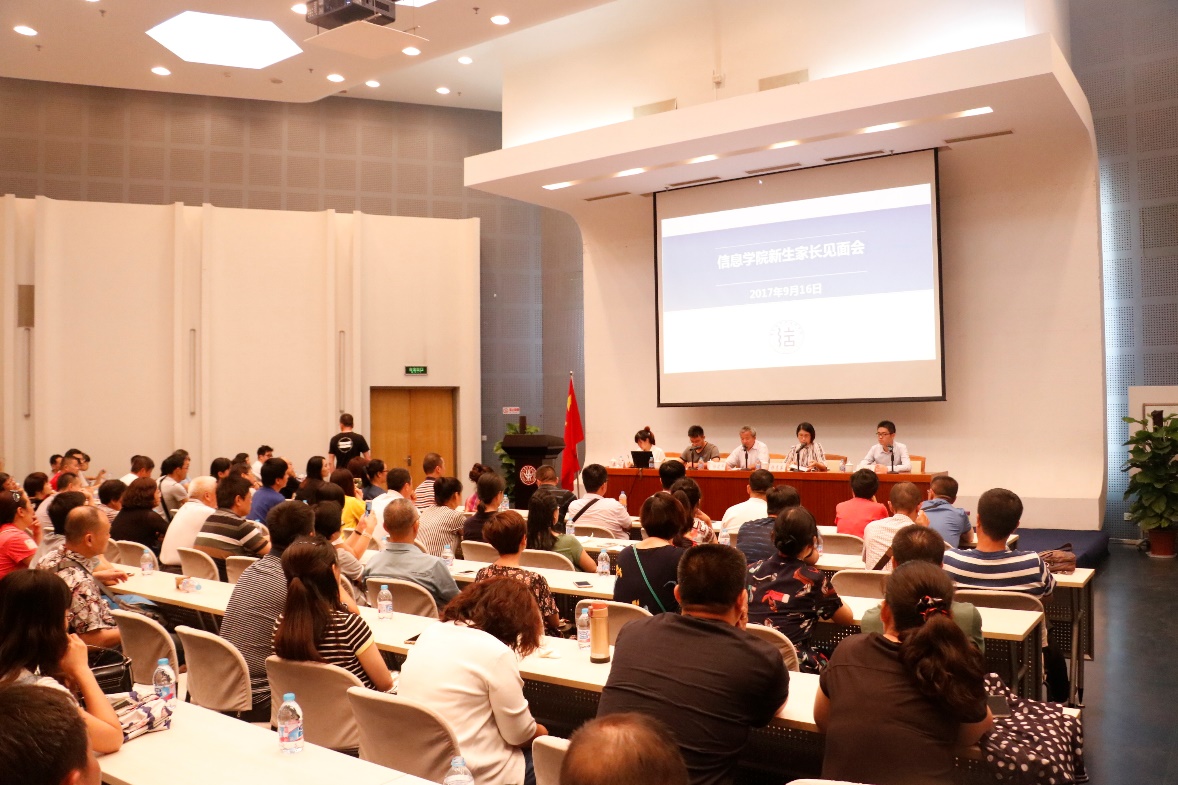 在学院新生家长会上,杨建平、白恩健、林惠英等学院领导向新生家长介绍了概况与发展历程、信息学院发展概况及教学管理等方面的内容。2017级本科生辅导员李丽、施政两位老师为新生家长们详细介绍了大学的专业学习、学生管理规定与办法、奖助评定等政策,现场还对家长们提出的问题进行解答。此次家长会让新生家长对孩子以后的学习生活有了初步认识和较为清晰的了解。