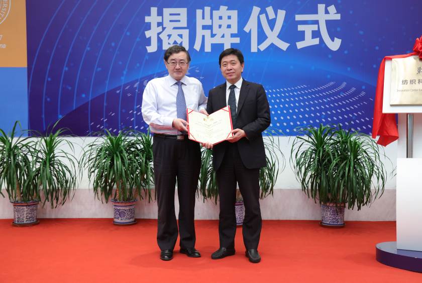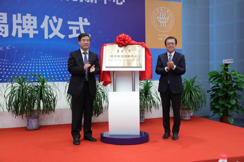9月28日,纺织科技创新中心(以下简称为“纺织科创中心”)在松江校区揭牌成立,中国工程院院士、我校俞建勇教授受聘为中心主任、首席科学家。中国工程院院士周翔、孙晋良,中国纺织工业联合会副会长李陵申,上海市科学技术委员会副主任干频,上海市松江区政协副主席、松江区科学技术委员会主任赵宏卫,美国加州大学戴维斯分校教授潘宁,香港理工大学教授陶肖明,美国加州大学戴维斯分校教授孙刚等专家与嘉宾出席揭牌仪式。我校出席揭牌仪式的校领导有校党委书记朱民,校长蒋昌俊,校党委副书记崔运花,副校长邱高、陈革,陈革主持揭牌仪式。上海市科学技术委员会高新处、上海市松江区广富林街道党工委负责人,学校相关学院、职能部处负责人,师生代表等参加揭牌仪式。