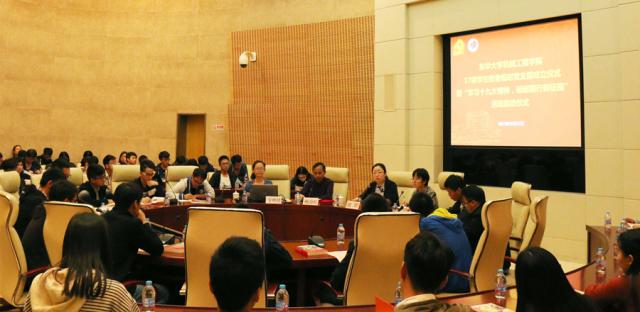 机械工程学院党委副书记李宁蔚宣读《中共机械工程学院委员会关于成立17硕学生宿舍临时党支部的决定》,会上,还聘请了党员教师鲍劲松和吕宏展老师为机械工程学院“大学生党员成长导师”,鼓励更多教师党员参与学生党员的教育管理,成为学生健康成长引路人。