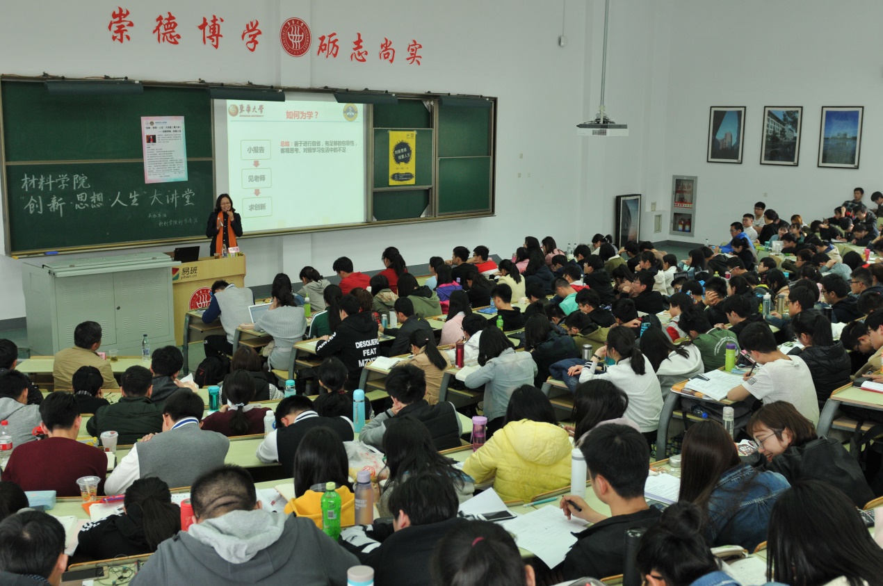 英材青年理论研究社陆续举办了两场“创新•思想•人生”系列讲座,分别邀请材料学院院长朱美芳教授和材料学院党委书记戴蓉以“人生导师的角色”为主题,分别就如何做好理论学习和创新创业以及新时期知识分子应具备的操守进行阐述与探讨,启发学子创新思维,并思考学术科研与社会责任之间的关系。另外,社团成员以学习探讨会的形式,围绕戴蓉主编的《化纤•材料•人生》一书,挖掘杰出“材料人”在成长过程中的优秀品质。