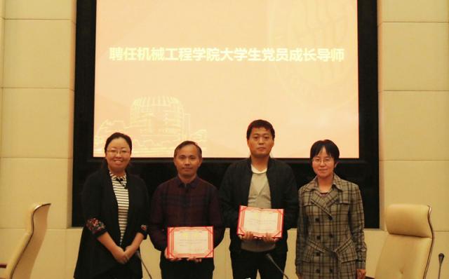 机械工程学院党委副书记李宁蔚宣读《中共机械工程学院委员会关于成立17硕学生宿舍临时党支部的决定》,会上,还聘请了党员教师鲍劲松和吕宏展老师为机械工程学院“大学生党员成长导师”,鼓励更多教师党员参与学生党员的教育管理,成为学生健康成长引路人。
