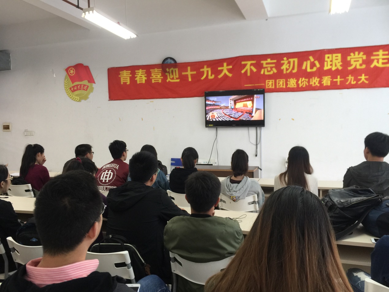 10月18日,中国共产党第十九次全国代表大会在人民大会堂隆重开幕,习近平总书记代表党的十八届中央委员会作《决胜全面建成小康社会,夺取新时代中国特色社会主义伟大胜利》的报告。团委开放大学生活动中心多间活动室,组织团员青年收看十九大直播,并组织“青春筑梦进行时,我为十九大点赞”讨论活动,广大青年欢欣鼓舞,纷纷对十九大的胜利召开表达了喜悦之情与坚定之信念。