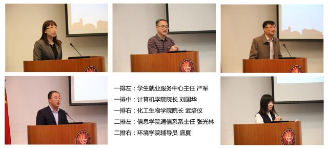 会上,邱高宣读了2017年度学生就业创业工作先进个人及就业创业促进奖名单,化学化工与生物工程学院院长武培仪、计算机学院院长刘国华、信息学院通信系系主任张光林、环境学院辅导员盛夏作了交流发言。