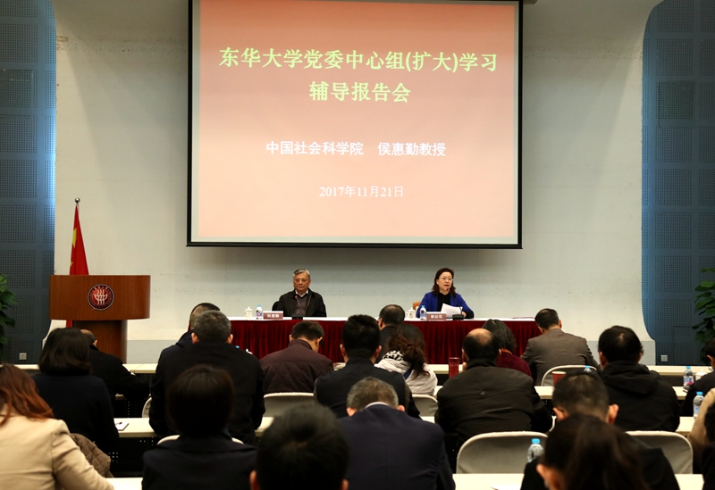 11月21日,学校党委中心组学习(扩大)会议在松江校区召开,中国社会科学院教授、校兼职特聘教授侯惠勤作学习宣传贯彻党的十九大精神专题辅导报告。校领导班子成员出席报告会,会议由校党委副书记崔运花主持。