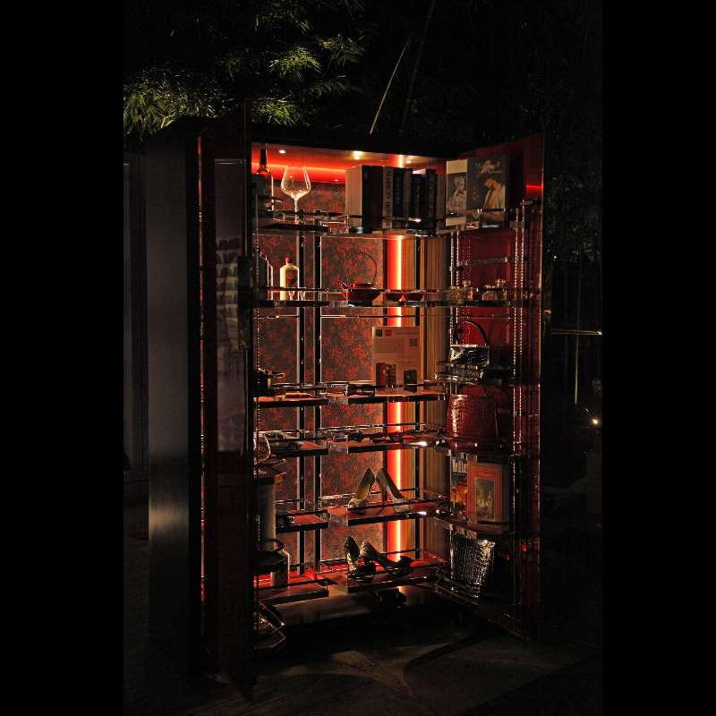 自2013年以来,产品设计系生活产品设计工作室与德国凯斯宝玛展开设计合作,试图将德国高端制造工艺与中国生活方式相结合,并开发了VOLUME K品牌系列产品。应上海市经信委邀请,在此次展览会上展示部分系列设计作品——Tandem展柜、咖啡小站、茶柜,作品受到与会领导、专家以及企业的关注,并对系列产品的设计品质给予高度评价。