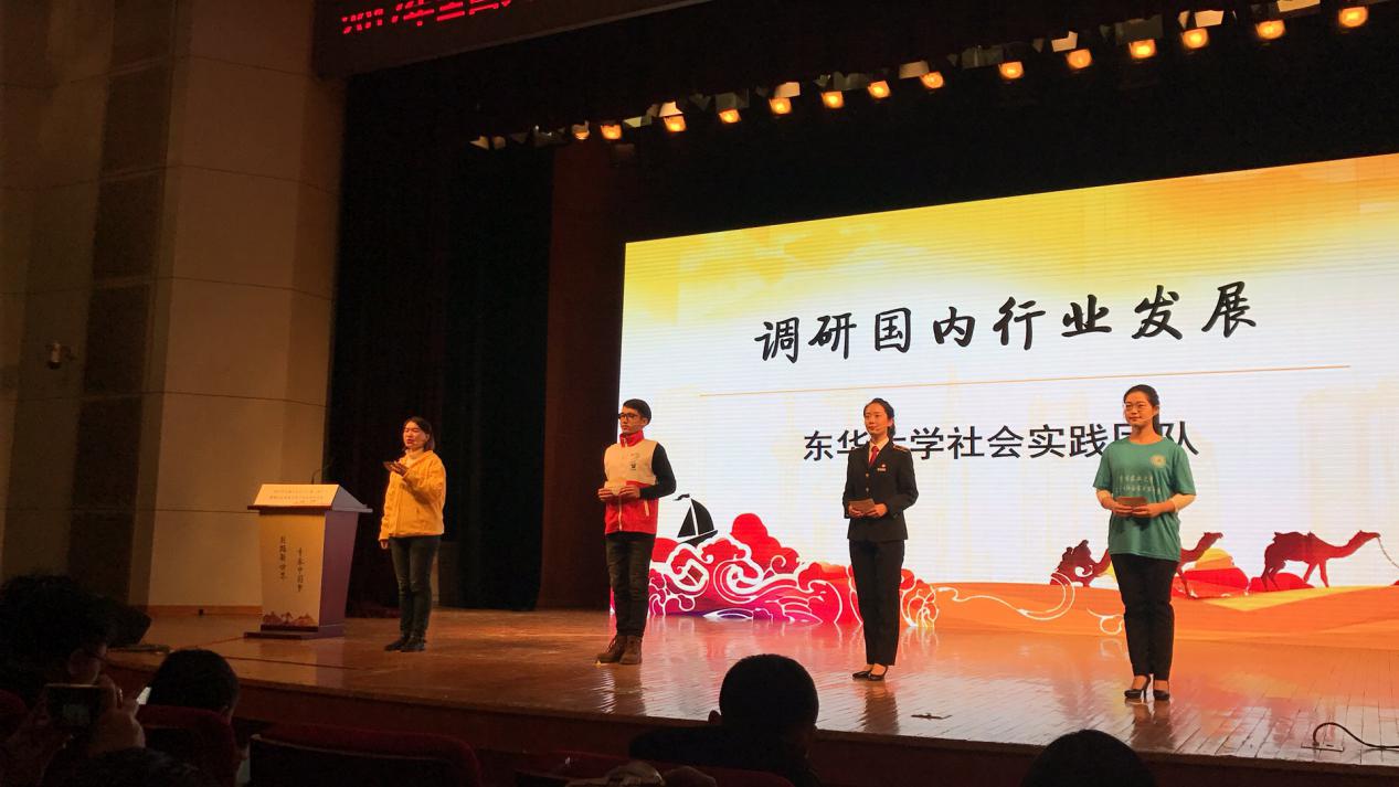 11月30日,“丝路新世界·青春中国梦” 2017年全国大学生“一带一路”暑期社会实践专项行动总结发布会在北京举行,我校人文学院“郁郁桑青,织华夏锦绣;巴蜀探古,歌嫘祖懿德”赴四川绵阳助力传统文化传承实践团实践团,纺织学院第七期援疆实践团获评全国“一带一路”专项优秀团队称号,援疆实践团队长刘凡茜子获优秀个人称号,获评优秀组织单位。发布会现场,援疆实践团作为上海市唯一一支,也是上海市首支团队,受邀作为五大活动主题的20支优秀代表团队之一进行成果展示和汇报。
