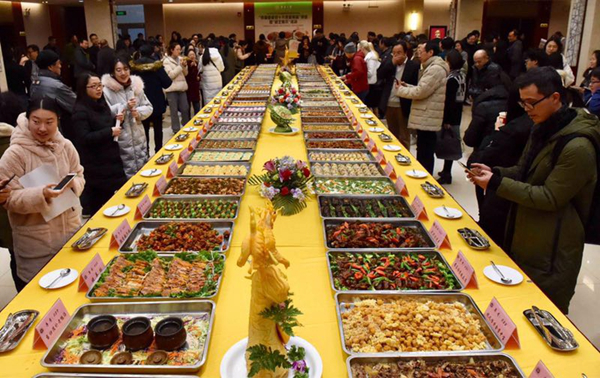 今天参加“厨艺展示”活动的菜品共有100个,其中红案菜肴74个,白案点心26个。参加“我最喜爱的十大食堂菜品”评选的菜品共有69个,其中红案菜肴43个,白案点心26个。