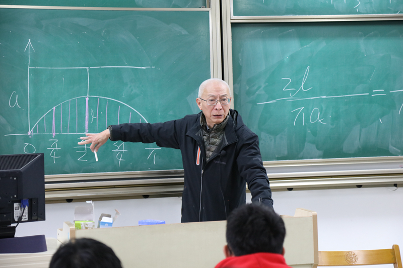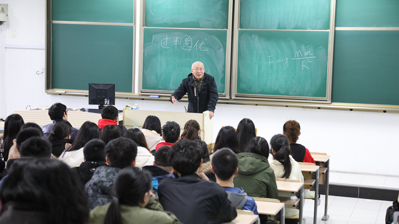 遒劲有力的手在黑板上写下一串串公式,激情洋溢的男中音在教室里回响;一截又一截粉笔头摊开在讲台,白色粉笔灰将双手纹路勾勒得愈发清晰。3月20日下午,在松江校区第一教学楼,年逾古稀的陈孩未老师再次回到熟悉的讲台,带来本学期的第一场辅导讲座。