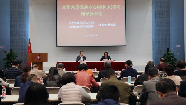 4月4日,学校党委中心组学习(扩大)会议在松江校区召开,第十三届全国人大代表、上海社会科学院副院长张兆安研究员受邀作学习贯彻全国“两会”精神专题辅导报告。校领导班子成员出席报告会,会议由校党委副书记刘淑慧主持。