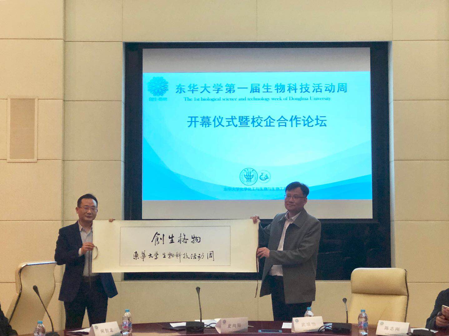 与活动周开幕式同期举办的还有校企合作圆桌论坛。论坛以“人才培养和就业能力提升”为主题,来自化工生物学院教授和校外相关企业代表就校企合作、人才培养、就业能力提升三个方面发表演讲。化工生物学院副院长史向阳、生物工程系主任何创龙分别以“高校与医院科研合作”“21世纪——生命科学的世纪”为主题进行发言。默沙东(中国)有限公司校园招聘负责人陈翀分享了公司人员招聘和人才培养的思路、方法及观点,认为学生阶段需要着重培养学习敏锐度、与他人建立关系的能力、与他人协作和抗挫折的能力。上药控股人力资源助理总经理陆伟以“发展是第一要务,人才是第一资源”为主题,介绍了中国医药行业改革开放40周年来翻天覆地的变化和当今医疗变革下的发展路径。上海育成生物科技园负责人徐美芳、教育培训基地负责人邢志刚介绍了生物行业小微企业的情况和发展前景,并向同学们抛出橄榄枝,欢迎前往生物科技园学习、参观和工作。论坛上同学们积极提问,学校和企业的老师为同学们做了细致的解答。