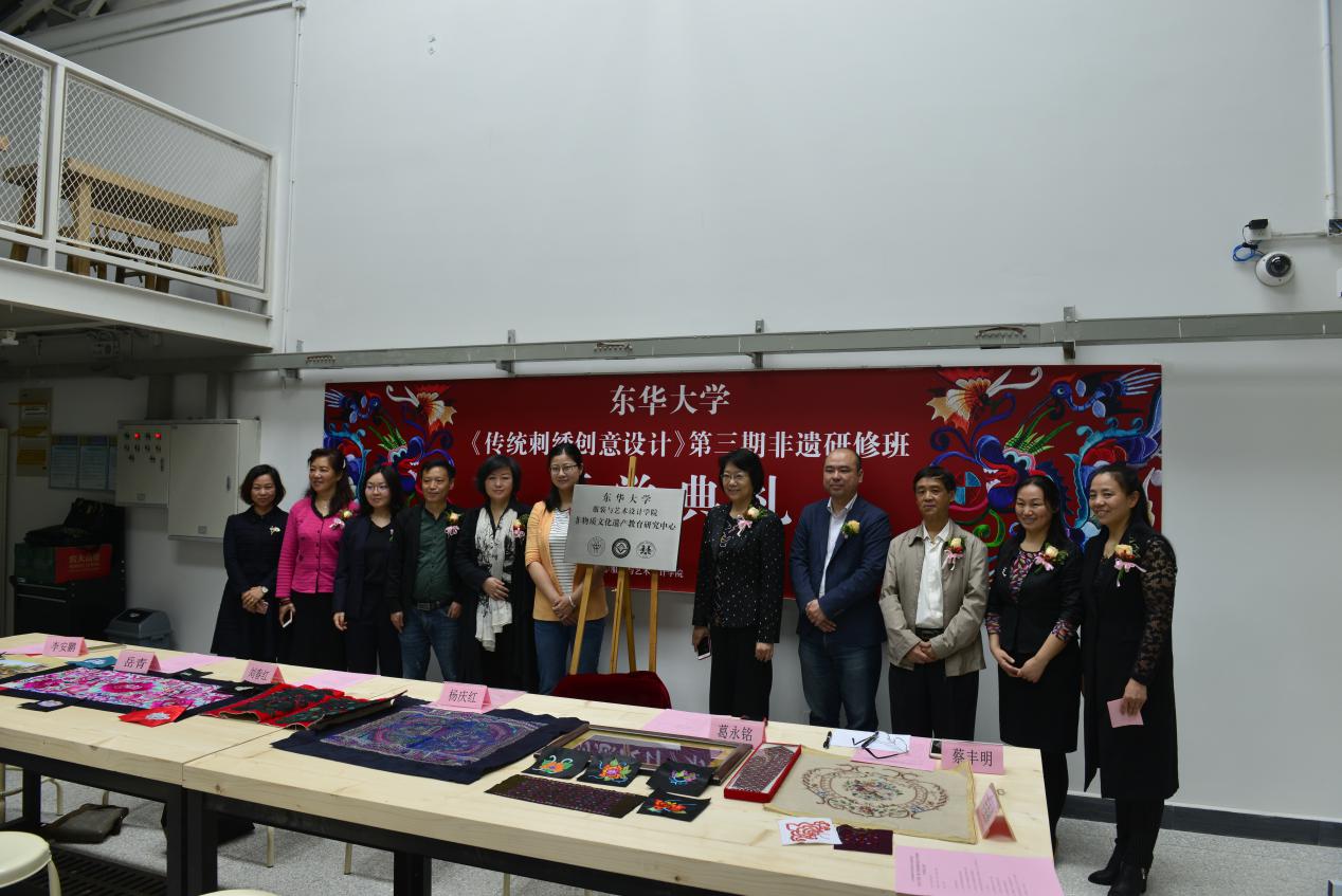 自我校被文化和旅游部列为2016年度中国非物质文化遗产传承人群研修研习培训计划首批院校以来,服装与艺术设计学院作为我校非遗培训的具体实施机构,发挥学科与科研优势,以独具特色的师资条件,成功举办1期《传统刺绣创意设计》普通培训班、2期研修班。非遗培训融理论讲解、实践创作、考察调研、回访指导于一体,提供以刺绣为主线,臻选服装、纺织工程、工商管理等学科在教学、研究、生产、传播各阶段的精品培训资源,曾举办学员刺绣服饰代表作品静态展示(展出作品近800件)及结对创作作品动态展演(展演作品72套)各3次,不仅有效帮助传承人群提升非遗保护传承水平、丰富了非遗保护措施,更激发了非遗传承的活力、促进了非遗与现代生活的融合。