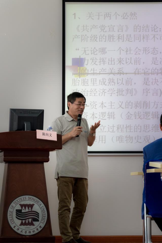 为纪念马克思诞辰200周年,5月4日,纺织学院党委邀请我校马克思主义学院陈向义教授为学院全体教工党员、学生支部支委作专题辅导报告。