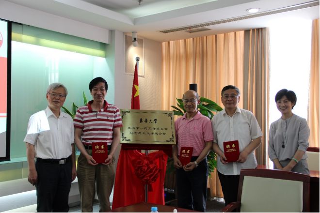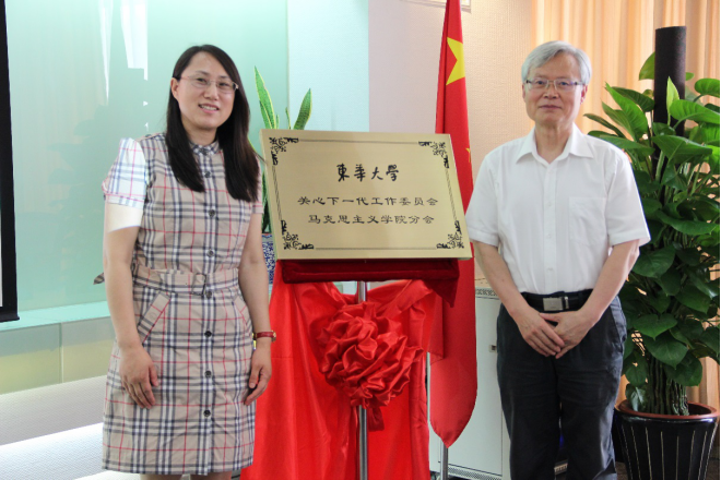 (校关工委副主任浦解明和关工委马克思主义学院分会主任王治东为学院关工委分会揭牌)