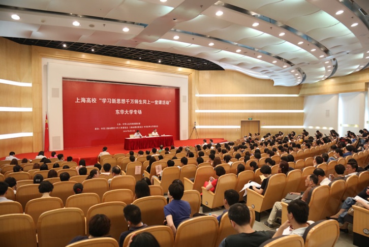 6月12日,上海高校“学习新思想千万师生同上一堂课活动”(以下简称为“同上一堂课活动”)专场在松江校区举行并通过网络同步直播。我校兼职特聘教授、中国社会科学院侯惠勤教授作题为《伟大思想的磅礴之力:马克思主义真理光辉和习近平新时代中国特色社会主义思想》的报告。党委书记朱民对习近平总书记在北大师生座谈会和纪念马克思诞辰200周年大会上的重要讲话精神进行讲解,并对学校深入学习宣传贯彻落实工作提出要求。崔运花、金海燕、陈南梁、舒慧生等在校领导班子成员及线上线下3000余名师生参加活动。