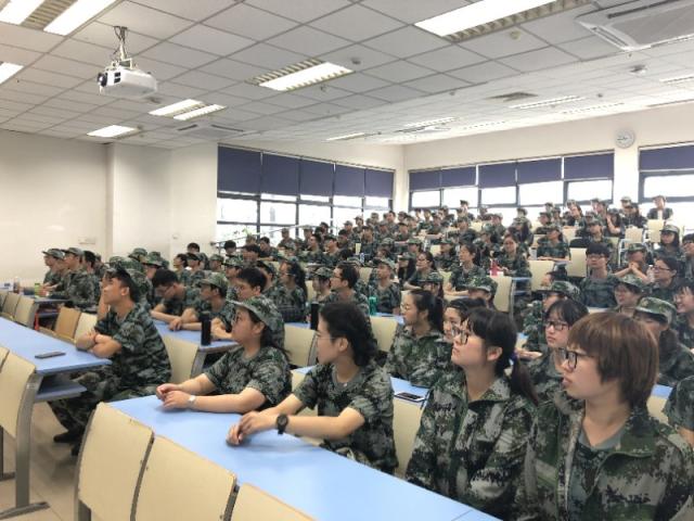 讲座结束后参训师生反响热烈,十二连指导员邓姗姗老师表示,这次国防军事教育讲座深入浅出,内涵深刻,讲解精彩,讲座内容有关国家安全防卫与领土统一,让大家对战争与和平有清醒的认识,对我国周边安全形势有了正确的认识和了解,大学生作为祖国未来的建设者,对他们进行国防军事教育,是培养他们爱国主义和社会责任感的教育,也是进行最稳固、最基础的国防意识教育。九连三排化工生物学院的贾曼同学表示,讲座中老师用简单易懂的方式讲述当今国防问题,用形象的比喻,引经据典,让大家更好地理解当今形势。