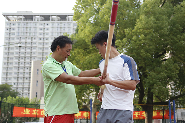 说起撑杆跳高,很多人的脑海里都会浮现运动员以完美的弧线越过高处横杆的画面,其实在专业运动员的训练中,每提高一公分都是十分困难的。1983年,袁老师大学毕业进入执教,1993年执掌学校撑杆跳高项目,仅一年时间,我校男子撑杆跳高就获得了全国第二的好成绩,2006年,女子撑杆跳高也进入全国前三。袁老师也两次获上海市政府颁发的“金牌教练员”,是全国功勋教练。“目前撑杆跳高的国内外训练方式有较大区别,国外多为放任式训练,运动员自由发展,国内则主要是‘家长式’训练,训练的大小事宜都由教练一手包办。而在我们队员的训练中,结合了国内外训练方式的优势,关注中外运动员在身体素质上的差别,集合世界顶尖技术,从训练到生活,对每一个运动员的训练进行‘个性化定制’,让他们能更好的激发潜能。”在采访中,袁老师多次提到“细节决定成败”,这句话也体现在他训练的方方面面,运动员从握杆到持杆助跑,每一个动作的细节和要领各个击破,对每个人存在的问题进行纠正和针对性训练。此外,多年经验告诉袁老师,由于紧张或环境影响等各种原因,再好的技术在赛场上都会“打折”,因此在平时训练中必须将这些因素考虑在内,只有在训练中达到120%,比赛时的发挥才能更加接近100%。