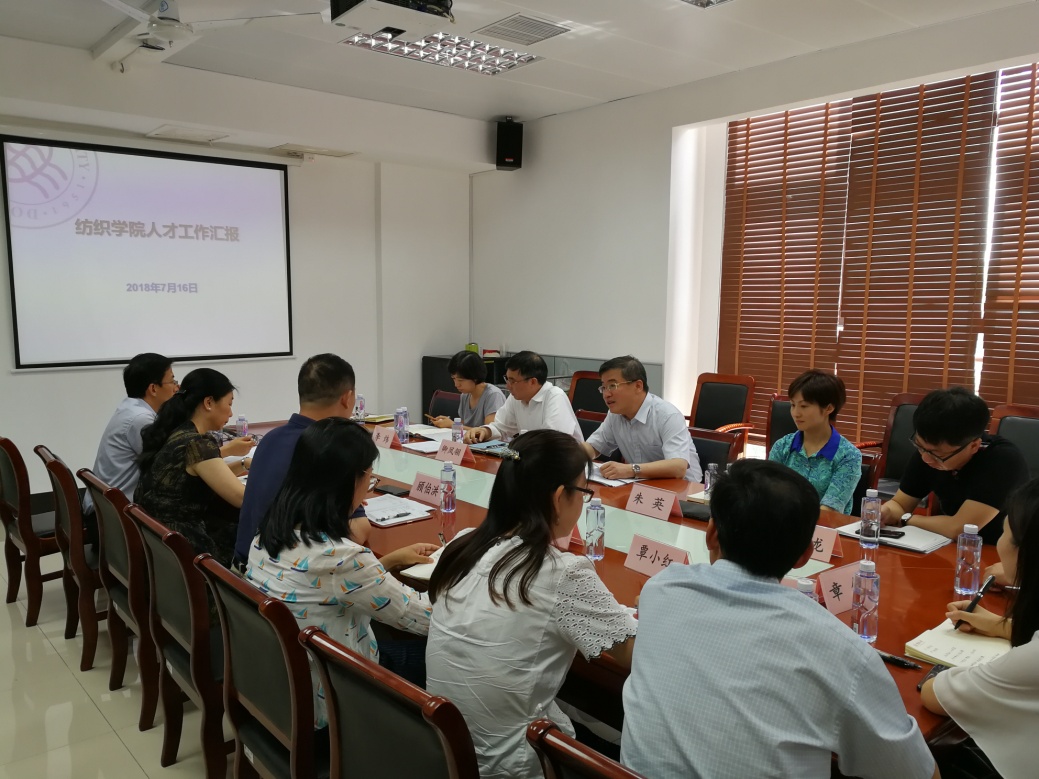 7月13日至19日,党委书记朱民先后赴机械、纺织、材料、化工生物等学院调研督查人才队伍建设和今年党委1号文《关于加快人才发展体制机制改革的实施意见》落实情况。副校长卿凤翎一同调研。人事处、组织部、党办等相关部门负责人参加调研座谈。