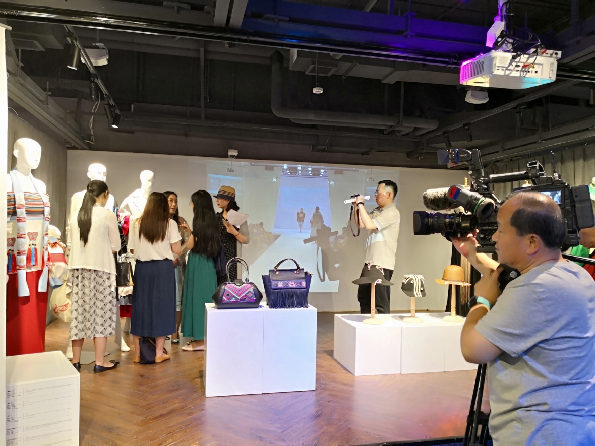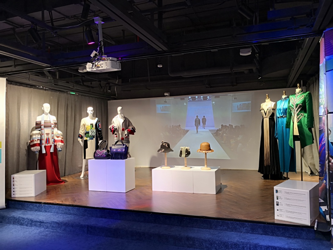 这次我校在上海大世界的展品共分两个部分,一部分是传承人+上海设计师品牌的合作商业实验作品,这种合作的作品不是简单的1+1=2,而是传统工艺的改良和技术创新基础上的商业探索,可喜的是学员马尾绣传承人韦秀竹、锡绣传承人王梅英和设计师Grace Chen合作设计制作的时装礼服,以及学员胡运和上海帽饰设计师沈婕合作设计制作的时装帽,和设计师颜淑仪合作设计制作的时装包都有了订单。另一部分的展品是刺绣传承人+服装设计专业学生合作设计制作的服装,服装整体设计制作的过程是传承人了解现代生活需要、现代生产方式的学习思考过程,也是在校园学习的学生了解传统文化、学习传统技艺的课堂,所设计的服装作品不仅要在传统和时尚之间找到契合的载体,也是高校平台向世界传播中国文化的承载物。此次研培成果的展出得到上海文广局和上海非遗处领导的支持和肯定,展览受到媒体的广泛关注和观众的喜爱。