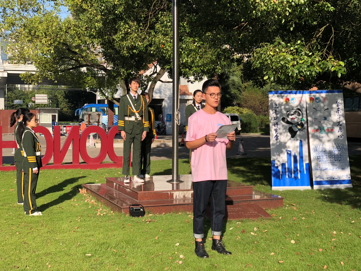 我校坚持在重要节日、纪念日举办升旗仪式,进一步激发广大青年爱国热情,也将继续带领广大青年秉持以爱国主义为核心的民族精神,在即将到来的首届中国国际进口博览会中展现志愿者饱满的精神风貌,为进博会的成功举办贡献青春力量。