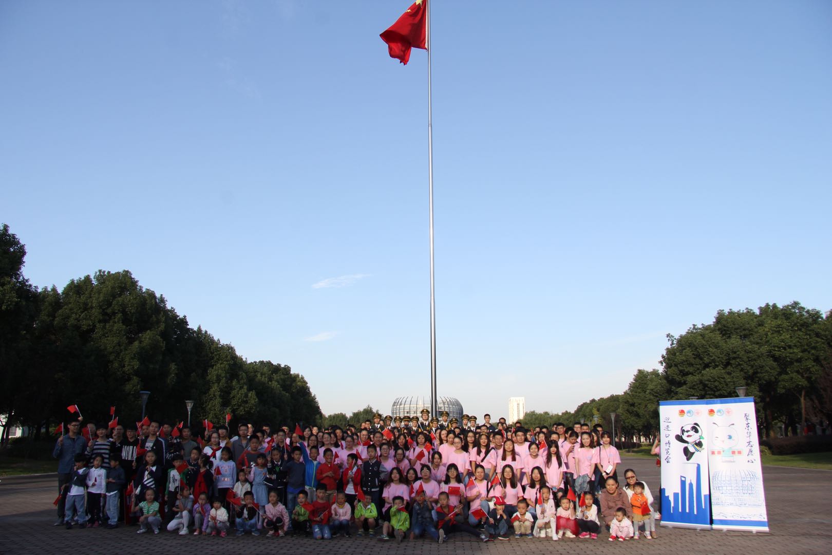 为庆祝新中国成立69周年,改革开放40周年,同时迎接首届中国国际进口博览会的到来,2018年10月1日,松江、延安路两个校区同时举行了“庆祝国庆,喜迎进博”升旗仪式。208名进博会志愿者、国旗护卫队、服装学院本科学生党支部、56民族工作室团支部、管理学院2018级预科生、材料学院团支部代表、计算机学院新生代表以及自发前来观礼的各学院师生300余人共同参与了本次活动。