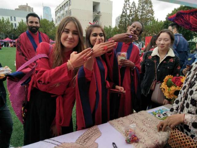 首届中国国际进口博览会进入最后15天倒计时。10月20日,以“迎进博,共参与,学非遗,知中国”为主题的第四届外国留学生中国文化节在延安路校区举行。本届文化节共设有中国传统手工艺、中国传统文化、中国传统服饰、中国传统美食和中国传统游戏五个展示区共30个展台,由国际文化交流学院主办,后勤集团、退管会等部门协办,留学生文化体验基地代表、留学生校友、退休教师及在校师生共同参加活动。